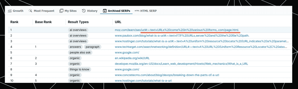 It’s inconsistent. Notice that the second AIO URL in the archived SERP report doesn’t have any fragment text. So at best this allows us to measure the minimum amount of traffic that came from one of these features.
