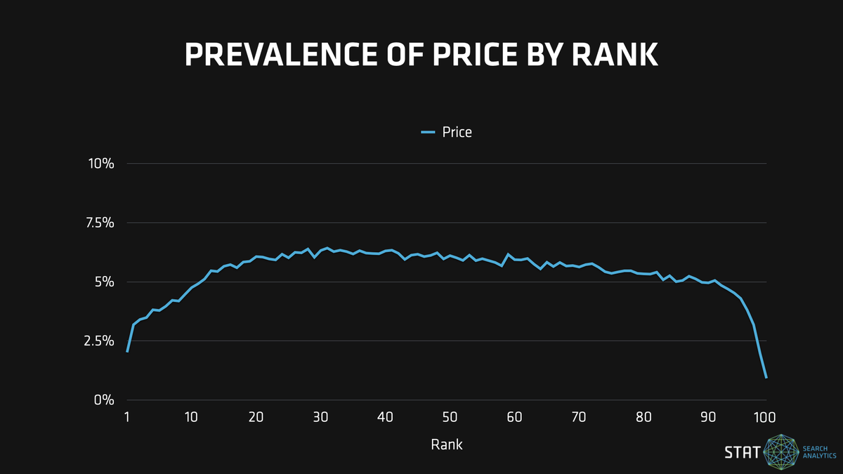 Prevalence of price rich results by rank