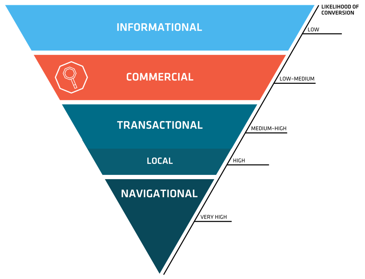 This was once, and sometimes still is, a bit of a contentious category in the SEO industry, with some feeling like it's too similar to transactional intent to be worth separating out. But the way people search is far too complex to be captured with just two intents so, over time, commercial intent has become more of an established segment.