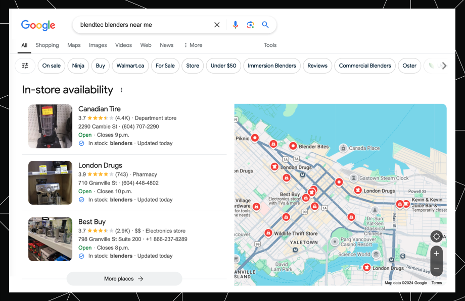 If Bob’s looking to get his steps in and save some money on shipping, his search here might look like: