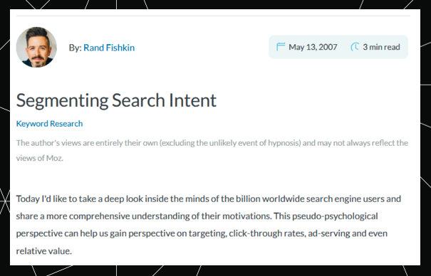 Of course, even before Google’s catchy intent names (which never really caught on), the concept of search intent had long-standing traction in the SEO industry. Rand Fishkin, for example, was writing about it as far back as 2007.