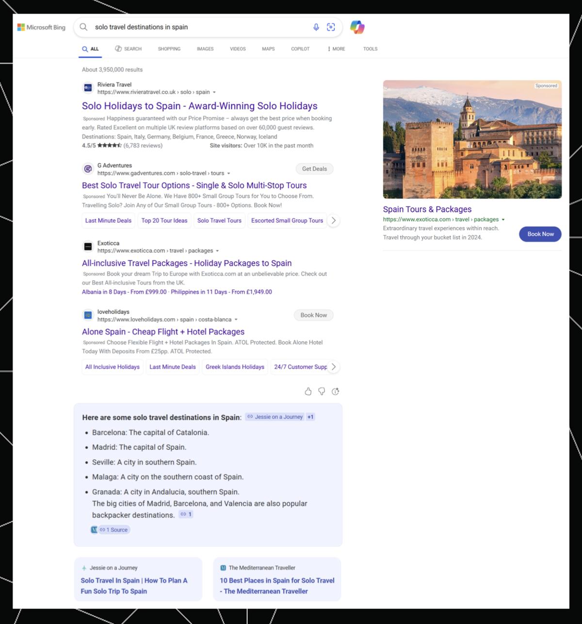 The first of these is Bing. Bing had their big splash with “The New Bing” in early 2023, beating Google to a public rollout of AI search features by over a year.